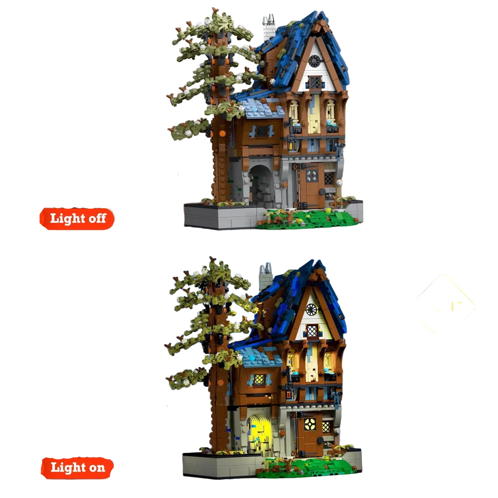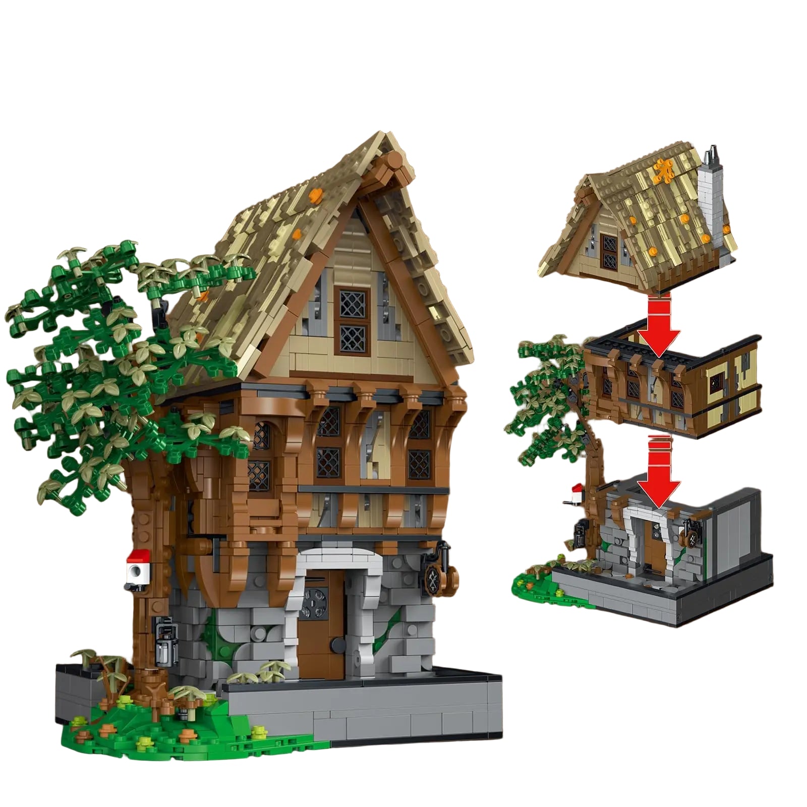Zbuduj własny fragment tętniącego życiem, dawnego miasteczka! Ten imponujący zestaw zabierze Cię w podróż do świata fantasy, rycerzy i rzemieślników. To nie jest zwykła makieta – to tętniąca życiem diorama, która po zmroku zmienia się nie do poznania.